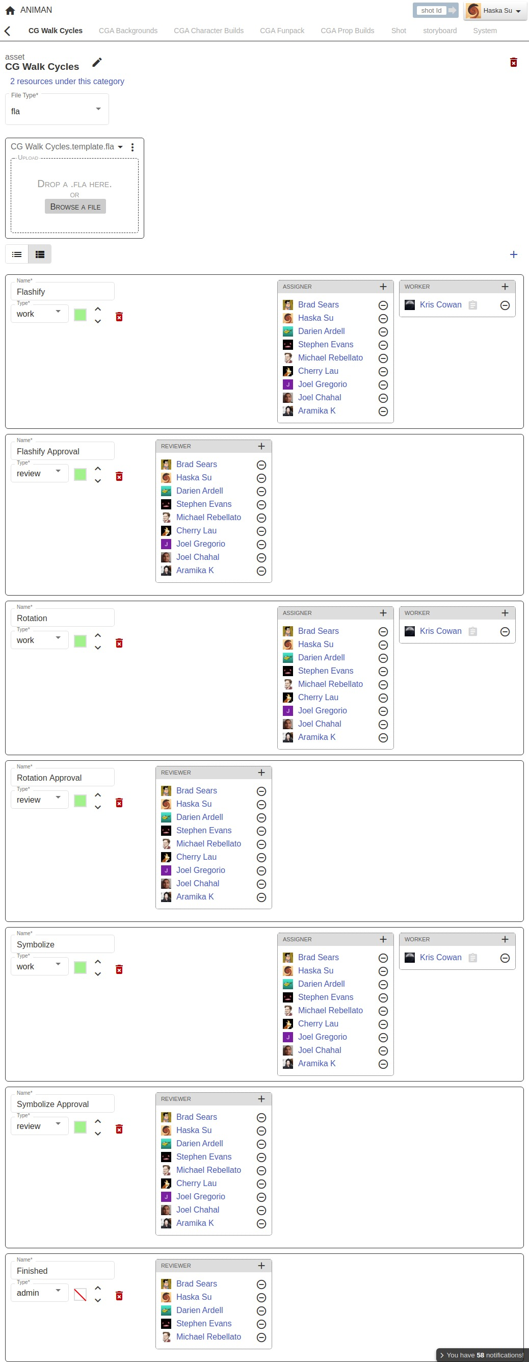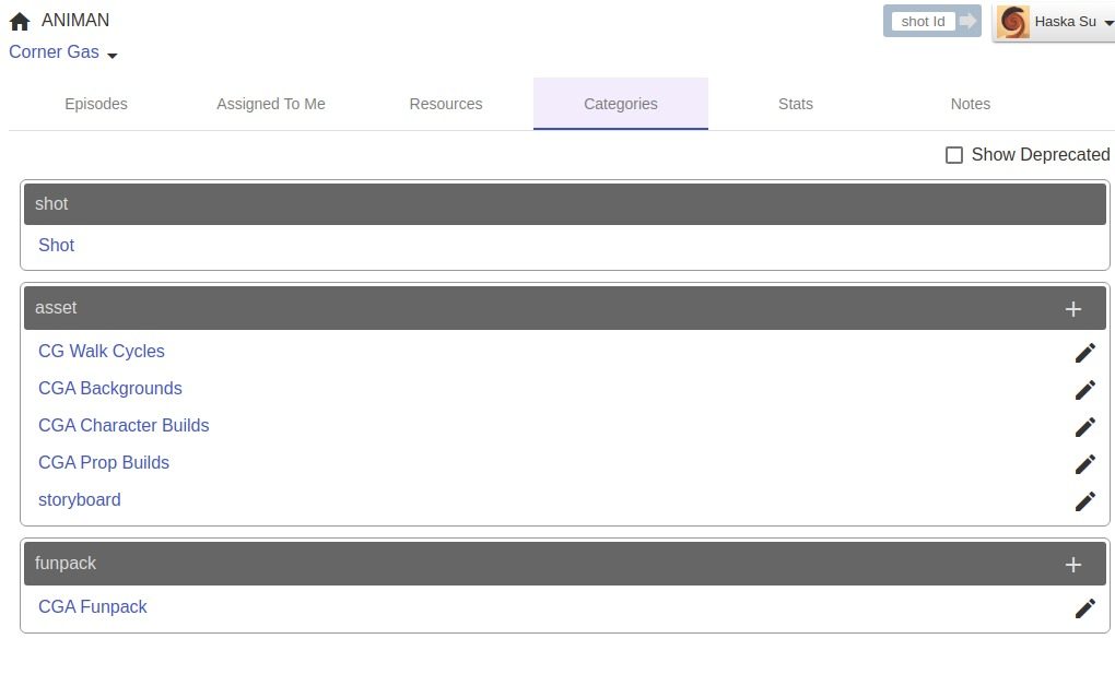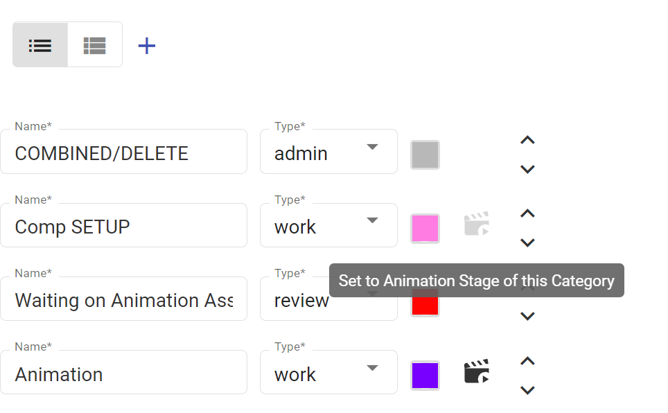 In Animan, each Resource must go through linear Stages from planning to completion. The Resource Category sets the default Stages to enable efficient management of workflow.