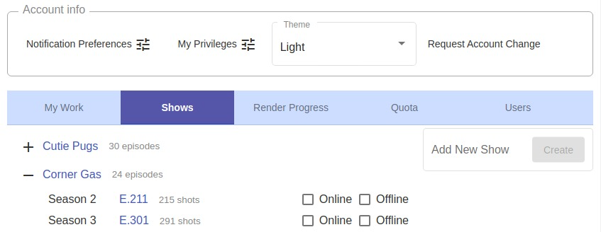 Once a Show is created, it is assigned a short code. The short code is used in various places on Animan to represent the Show.