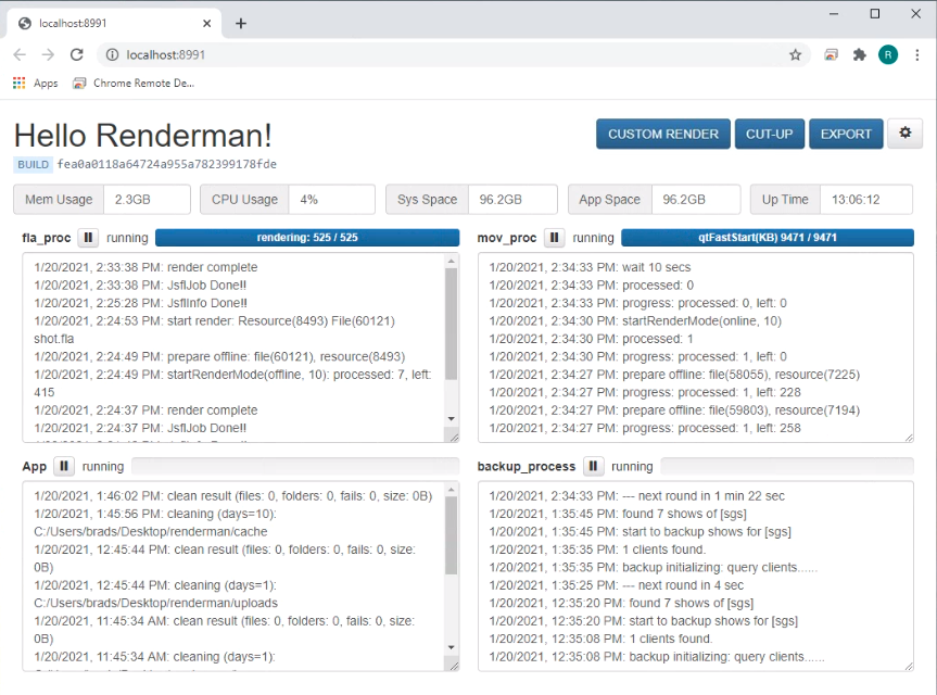 Run the installer. Once the installation is complete, a console page will load in your default browser where you can monitor the status of Renderman. The URL of this page is http://localhost:8991